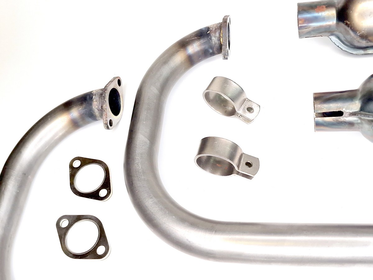 • Komplette Auspuffanlage mit Krümmern, Auspufftöpfen, Schellen und Dichtungen