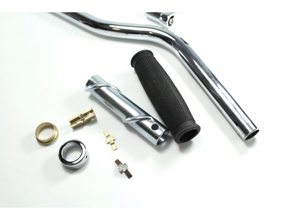Lenker-Satz roh für Zündapp DB/KK/DL – Lenkerrohr im Rohzustand (bilder mit Chrom nur als Beispiel). Inkl. verchromter Innenzughebel (Bremse/Kupplung), Drehgriffe links/rechts, Gummigriffe und Schrauben. Nachbau, EU-Fertigung.