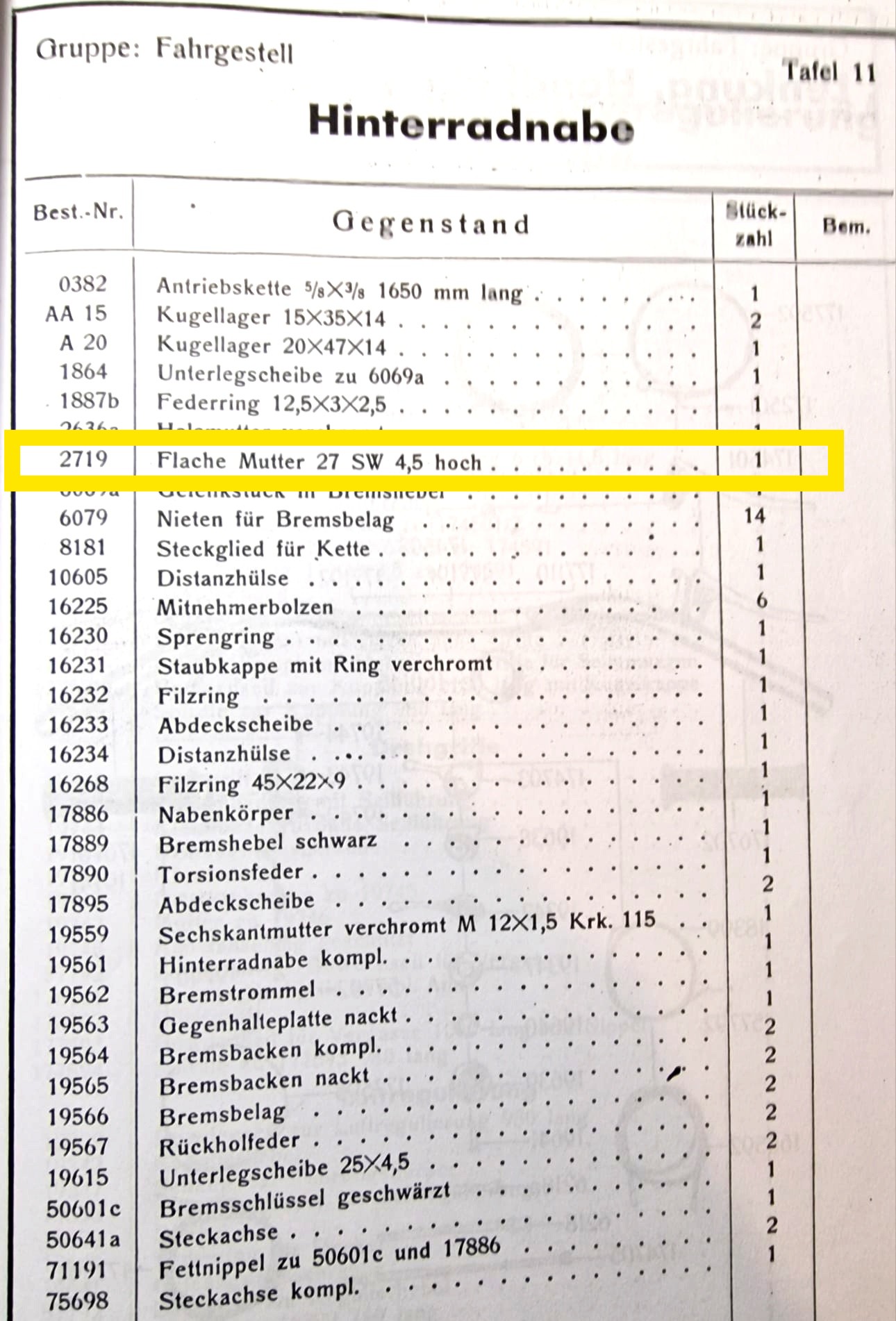 Mutter zur Bremsankerplatte für Hinterradnabe DKW 250 SB, 350 SB, 500 SB (Best.-Nr. 2719)